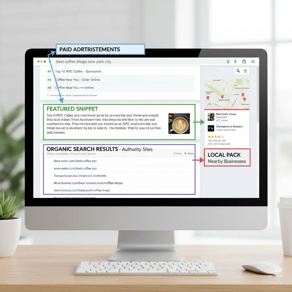 First of all, organic results are free: they come from SEO and are based on relevance, while paid listings rank as advertisements that businesses pay to display.